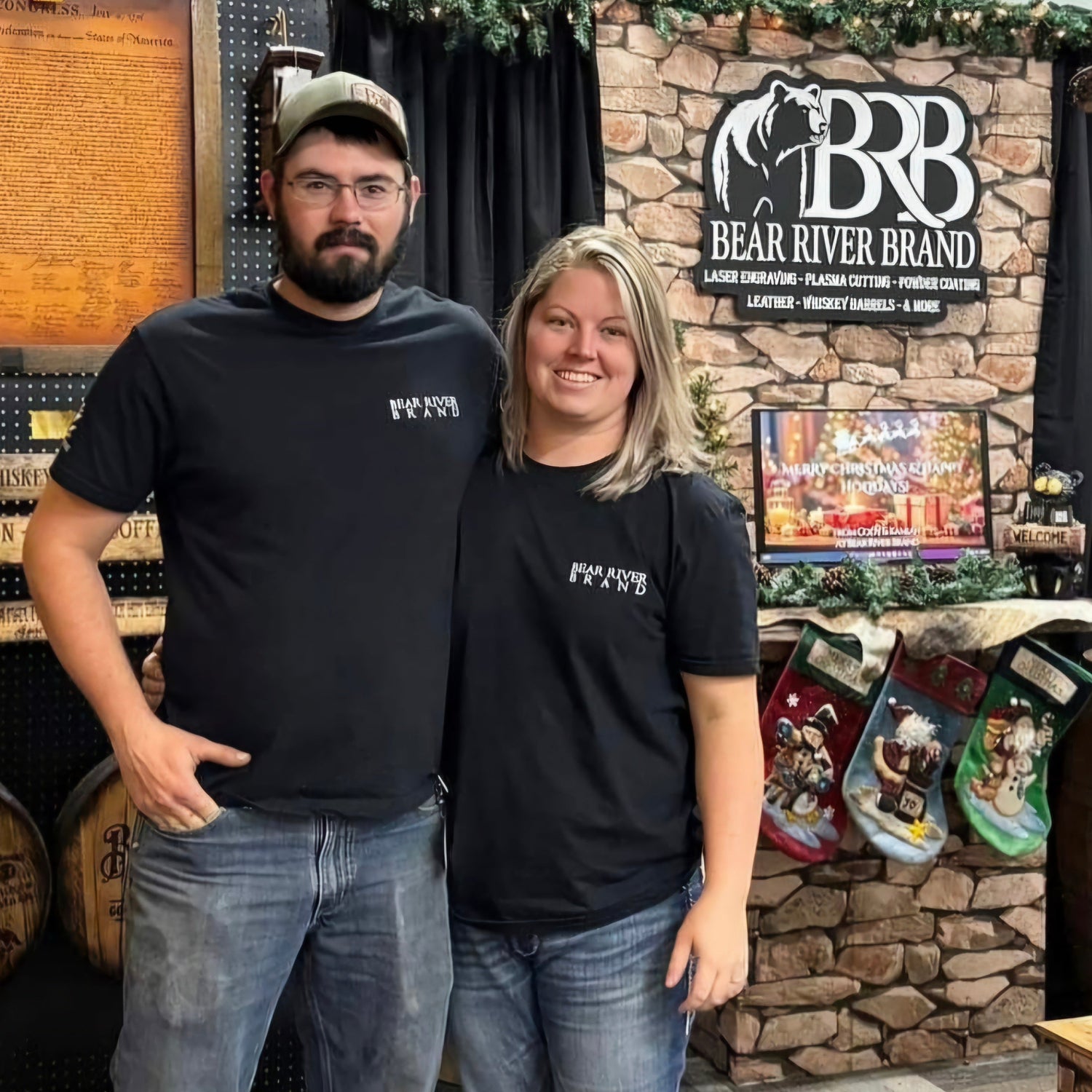 At Bear River Brand we are a small, family-owned business from Southwest Virginia led by Cody and Kamiah Widener - blue collar workers driven by a passion for the outdoors and a commitment to excellence. Creating Appalachian-themed items with a classy and rustic feel. Delivering high-quality awards and gifts for individuals, nonprofits, and large corporations. Our workshop includes 2 commercial lasers, CNC plasma table, CNC wood router, additional woodworking tools, a compact powder coating oven, leather sewing machines, and more.
